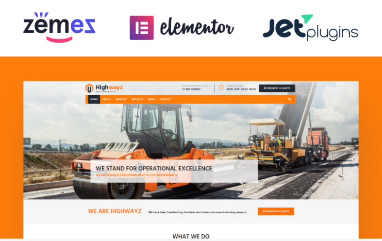 Highwayz - Road Construction WordPress Theme is developed by Templatemonster (Known & Good developer)